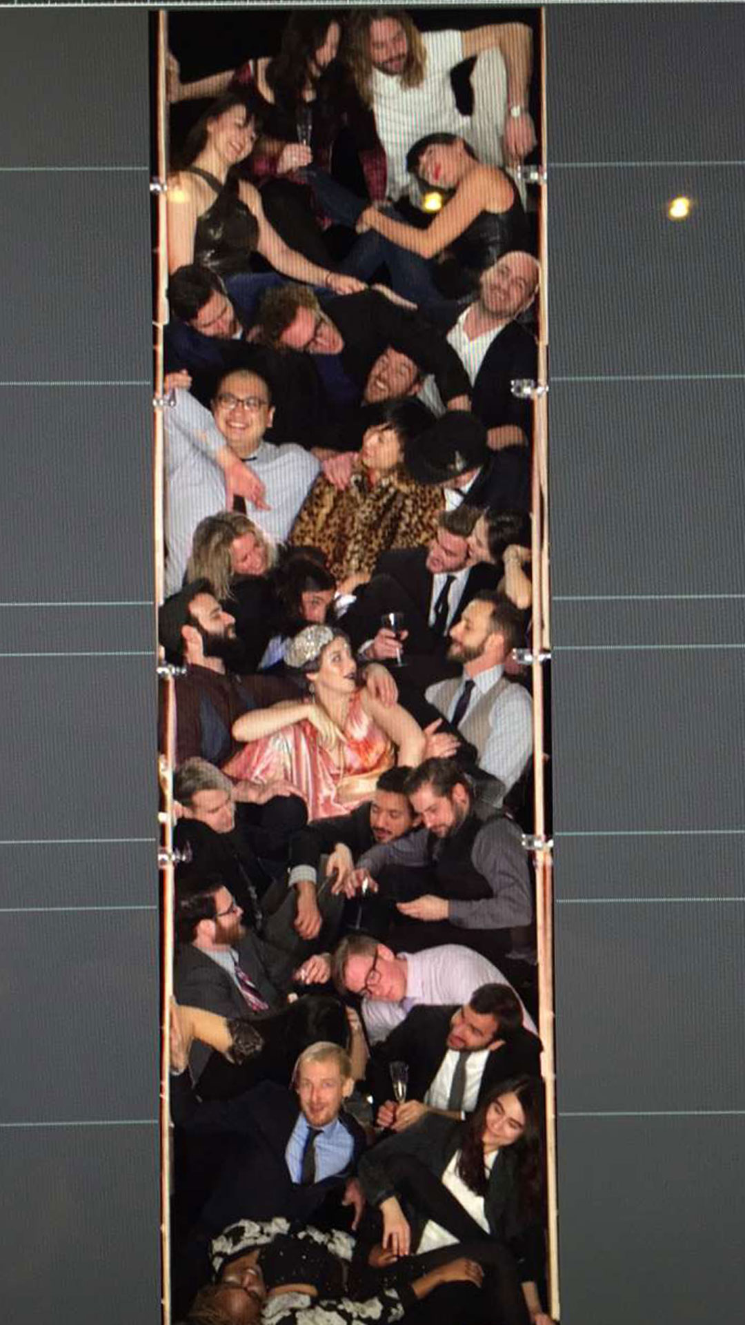 A site-specific projection art installation, People Pile was presented at Form and Substance: Miami 2015 during Art Basel week. The piece was commissioned by Integrated Visions to be be included in their video art exhibition that illuminated the side of the 34-story Intercontinental Hotel. To create the piece, we constructed a set at our studio in Brooklyn which conformed to the measurements of the hotel, and invited friends to come kick it at the most crowded VIP party in all of Art Week.